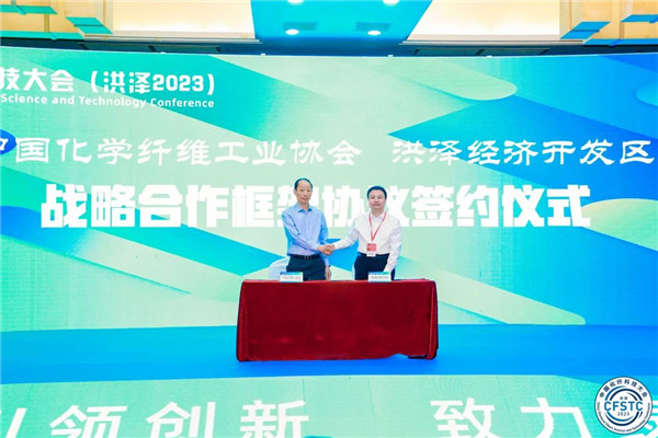會上,洪澤經濟開發區和中國化學纖維工業協會簽署戰略合作框架協議。同時,按照《合作共建研發基地管理辦法》,中國化學纖維工業協會決定與洪澤經濟開發區合作共建“綠色低碳差異化纖維產業基地”。今后雙方將密切交流,共同整合洪澤纖維材料產業的優勢資源,進一步明確未來發展定位,共同推進合作共建基地的建設和可持續發展。