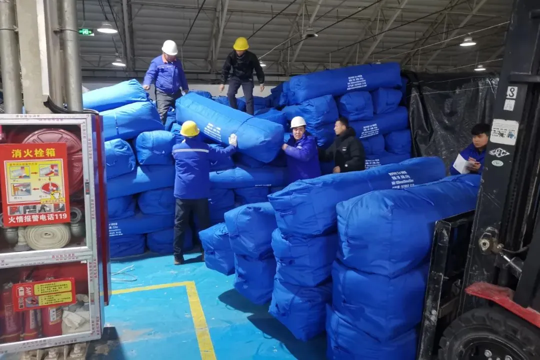 迅速部署所屬企業捐贈物資,全力支援抗震救災工作。際華森普利公司連夜組織全體男性職工將10000件皮大衣裝車,并于凌晨4點發出;際華7555公司緊急將10000床棉被出庫裝車,爭取第一時間將物資交付災區。