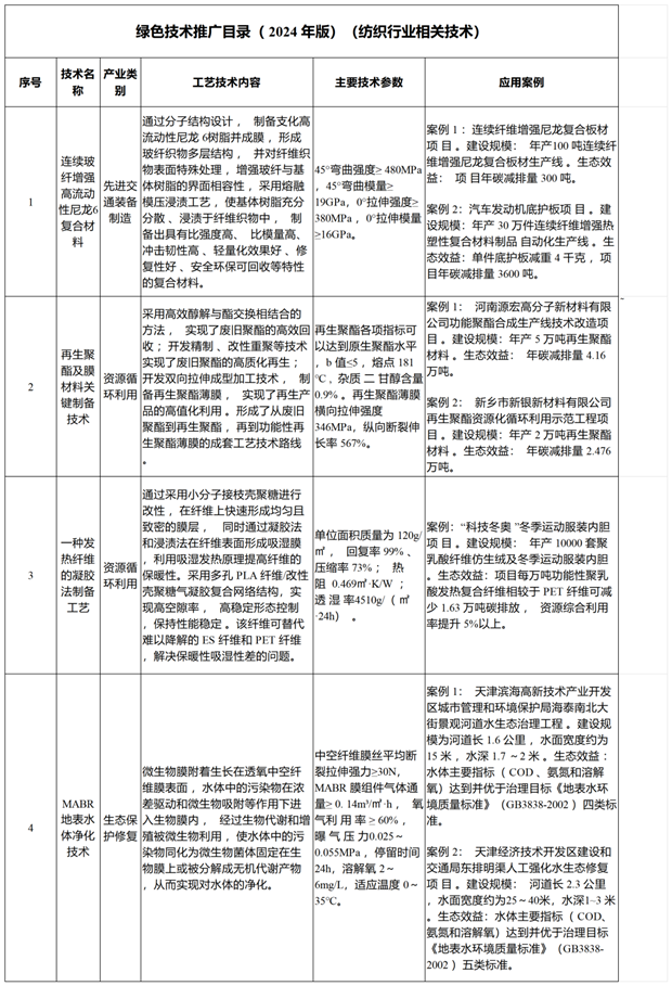 紡織行業有四項技術入選《目錄》,詳細技術情況如下: