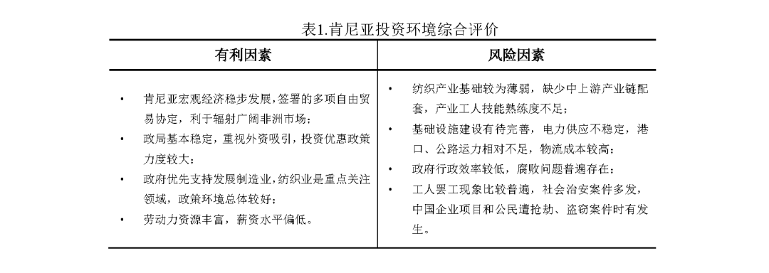 (5)肯尼亞尚未形成完整的紡織產(chǎn)業(yè)鏈,但因在勞動(dòng)力成本、國際貿(mào)易環(huán)境以及投資政策扶持等方面具有優(yōu)勢,軋棉、織造、服裝加工等細(xì)分領(lǐng)域有機(jī)會成為中國與肯尼亞紡織產(chǎn)業(yè)貿(mào)易投資合作的主要方向。企業(yè)可結(jié)合海外主銷市場情況,以服裝加工為中心赴肯投資,也可適當(dāng)向中上游環(huán)節(jié)延伸產(chǎn)業(yè)鏈,但需注意因紡織原料及配套產(chǎn)品依賴進(jìn)口導(dǎo)致的物流周期及成本等問題。