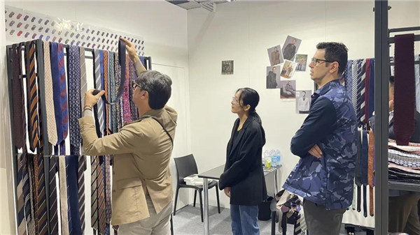 儀式后,雙方領導和嘉賓們一同步入展廳,近距離感受來自中國時尚企業(yè)的產品與工藝。此次諸多企業(yè)不僅帶來了最為優(yōu)勢的產品和技術,同時在產品選擇和展陳方式上,也帶有了明顯的中國文化元素,成為展會一道亮麗的“風景線”。