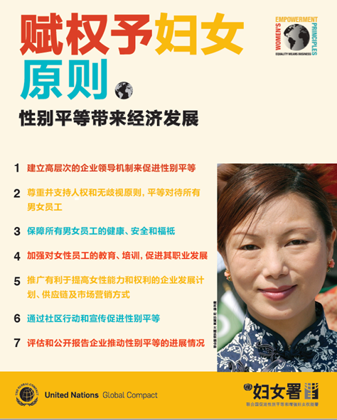 2010年,聯(lián)合國婦女署(UN Women)和聯(lián)合國全球契約辦公室(UN Global Compact)共同發(fā)起了《賦權(quán)予女性原則》(WEPs),指導(dǎo)行業(yè)企業(yè)關(guān)注婦女權(quán)益,推動(dòng)性別平等。