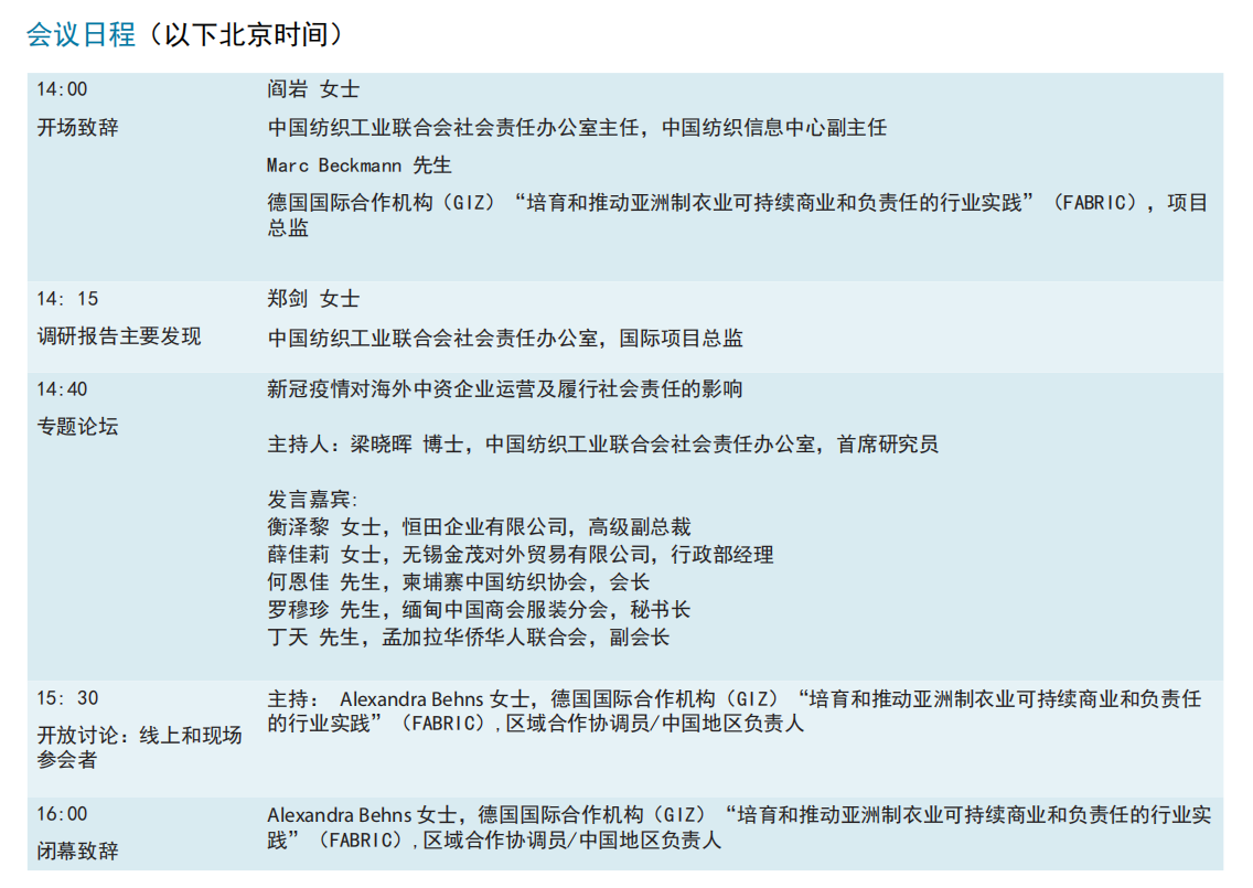 《“新冠”疫情對海外中資紡織服裝企業運營及社會責任影響 》調研報告發布會即將召開