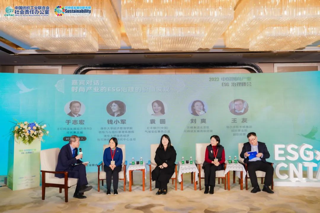 除內(nèi)容分享外,會(huì)議設(shè)置了嘉賓對(duì)話環(huán)節(jié),由《可持續(xù)發(fā)展經(jīng)濟(jì)導(dǎo)刊》社長(zhǎng)兼主編于志宏主持,邀請(qǐng)清華大學(xué)經(jīng)濟(jì)管理學(xué)院領(lǐng)導(dǎo)力與組織管理系教授、清華大學(xué)綠色經(jīng)濟(jì)可持續(xù)發(fā)展研究中心主任錢小軍、匯豐銀行(中國(guó))氣候變化事務(wù)總監(jiān)袁圓、蘭精集團(tuán)北亞區(qū)可持續(xù)發(fā)展高級(jí)經(jīng)理劉爽、鄂爾多斯羊絨集團(tuán)絨紡事務(wù)部副總經(jīng)理王友,圍繞時(shí)尚產(chǎn)業(yè)ESG治理的價(jià)值發(fā)現(xiàn)進(jìn)行探討。