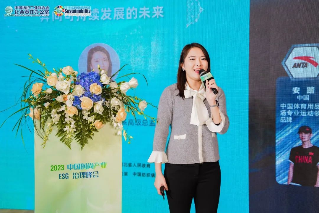 作為品牌企業(yè)代表,安踏集團(tuán)ESG及投資關(guān)系高級(jí)總監(jiān)黃萃琪表示,安踏自2007年開始應(yīng)香港聯(lián)交所要求披露CSR報(bào)告;2016年開始發(fā)布ESG報(bào)告,是第一個(gè)發(fā)布ESG報(bào)告的中國(guó)體育用品公司;2021年安踏成立30周年之際在內(nèi)部建立了可持續(xù)發(fā)展委員會(huì),自上而下推動(dòng)ESG工作。“與伙伴共生”是安踏將ESG融入公司戰(zhàn)略的核心理念。經(jīng)過(guò)重要性調(diào)研,安踏將“消費(fèi)者”“人”“伙伴”“員工”“供應(yīng)商伙伴”五個(gè)方面作為重點(diǎn),分別制定目標(biāo)并實(shí)施。例如,公司制定了2050年碳中和的氣候目標(biāo),截至今年年底女性高管比例已超過(guò)36%,開展供應(yīng)商環(huán)境與社會(huì)方面的培訓(xùn),將可持續(xù)原材料比例披露于包裝和吊牌上等等。