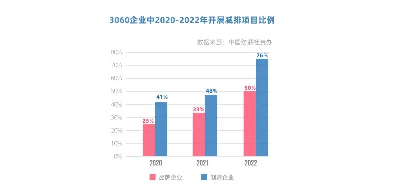 三年來(lái),在自身運(yùn)營(yíng)范圍內(nèi)開(kāi)展減排項(xiàng)目的企業(yè)由37%上升到2022年的68%,制造企業(yè)這一比例高達(dá)76%。