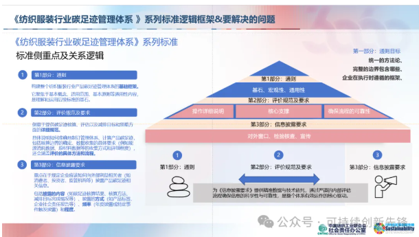波司登國際控股有限公司董事會辦公室主任兼資本市場總監陳皓在會上分享了波司登在ESG與雙碳領域的最新進展。作為全球領先的羽絨服專家,波司登以“1+3+X”戰略框架為指引,明確短期、中期及長期凈零排放目標,計劃到2038年實現集團運營層面凈零排放,并引領全價值鏈的可持續發展。公司通過數字化供應鏈管理與定制化生產,減少不必要排放,同時大力推動能源效率提升和可再生能源利用。在ESG領域,波司登連續七年發布高質量ESG報告,MSCI評級達行業領先的A級,并首次入選標普全球可持續發展年鑒(中國版)。此外,公司研發環保面料、創新技術,構建涵蓋零售端、產品創新和產業園區的綠色消費生態圈,最大化減少對環境的影響。站在可持續時尚的前沿,波司登以堅定決策和實際行動,履行企業社會責任,向世界展示中國品牌的擔當與力量,推動時尚行業邁向綠色未來。 標準編制說明及框架介紹