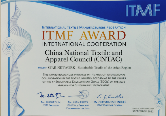 9月17-20日,2022國際紡織制造商聯(lián)合會(ITMF)年會在瑞士達沃斯成功舉辦。期間,亞洲地區(qū)可持續(xù)紡織網(wǎng)絡(STAR Network)榮獲首屆ITMF國際合作獎。