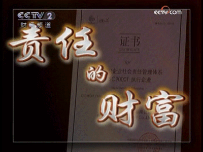 2009年11月21日晚21:55分,中央電視臺財經頻道(CCTV2)中國財經報道欄目以《責任的財富》為題,就企業社會責任問題進行了長達近60分鐘的深度報道。報道對中國紡織服裝行業在金融危機背景下堅持開展社會責任建設推廣