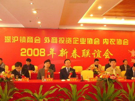 2008年1月9日,中國紡織工業(yè)協(xié)會(huì)孫瑞哲副會(huì)長一行應(yīng)邀出席中國內(nèi)衣名鎮(zhèn)――深滬鎮(zhèn)(福建晉江)商會(huì)、外商投資企業(yè)協(xié)會(huì)、內(nèi)衣協(xié)會(huì)聯(lián)合舉辦的“2008年新春聯(lián)誼會(huì)”。